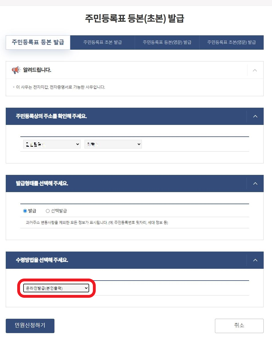 ■ 3. 수령방법을 온라인발급(본인출력)으로 진행합니다.